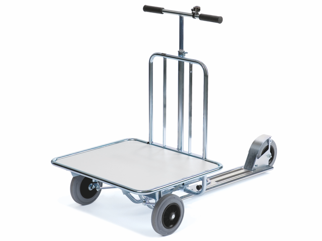 La piattaforma è resistente e laminata in grigio chiaro. Efficace freno a pedale che agisce sulla ruota posteriore, lasciando entrambe le mani libere per sterzare.Colore