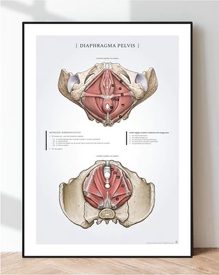 50x70cmIl poster di anatomia illustra i muscoli del pavimento pelvico femminile. Il poster contiene illustrazioni del pavimento pelvico femminile viste dall'alto e dal basso. I muscoli del pavimento pelvico sono raggruppati, numerati e denominati con titoli in danese e latino puro in una visualizzazione a elenco semplice e chiara.Le illustrazioni includono:- Il bacino femminile visto dall'alto, comprese ossa e muscoli- Il bacino femminile visto dal basso, comprese ossa, muscoli e genitali esterni.I muscoli del pavimento pelvico sono raggruppati nell'elenco dei nomi in base ai muscoli che compongono principalmente il pavimento pelvico stesso, nonché ad altri muscoli importanti del pavimento pelvico, in modo da potersi orientare facilmente e avere una panoramica.Nel complesso, il poster fornisce una panoramica didattica sia visiva che testuale, il che rende facile e intuitivo vedere e ripetere i muscoli del pavimento pelvico/pavimento pelvico.Il poster viene consegnato nel formato 50x70 cm in qualità Stampa.NOTA! Questo poster fa parte della nostra nuovissima serie, che chiamiamo "poster clinici". Il contenuto della serie si basa sul nostro completo e ingegnoso poster muscolare EA5 e sviluppa i singoli gruppi muscolari a partire da qui, sia visivamente che testualmente. I nostri poster clinici sono progettati pensando all'estetica e alla semplicità. Con un design pulito e sobrio, i poster clinici possono essere utilizzati in molti contesti, sia come strumento didattico che come parte di un arredamento professionale ed elegante.NOTA! Cornice non inclusa.
